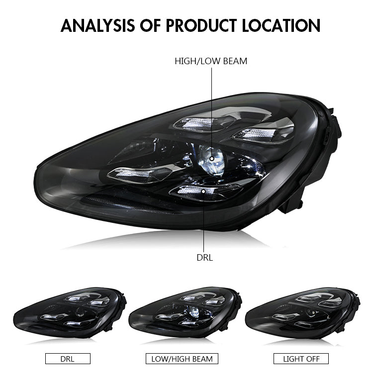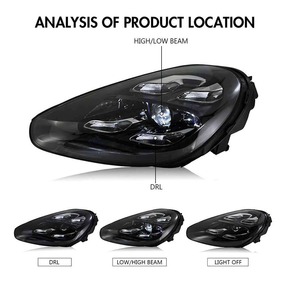 LED Matrix Headlights for 2015–2017 Porsche Cayenne 958.2, Full LED Upgrade Assembly w/ DRL & Adaptive High Beam