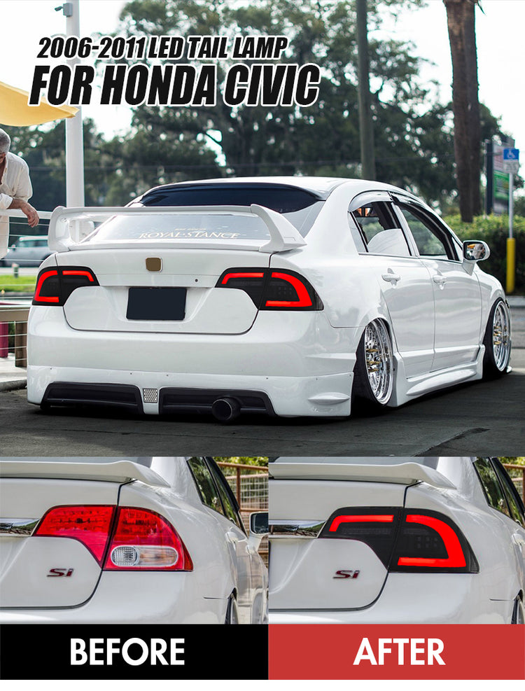Enhance Your Honda Civic 8th Gen (2006-2011) with our premium LED tail lights, designed to fit seamlessly into your vehicle for a perfect look. These lights are tailored specifically for the 8th generation Civic and come as a complete set with two pieces (driver and passenger sides).