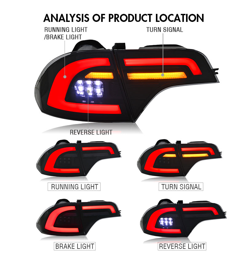 Stand Out with Unique Features: Equipped with sequential turn signals, dynamic animations, and breath running lights, these tail lights add a sleek, custom look to your car.