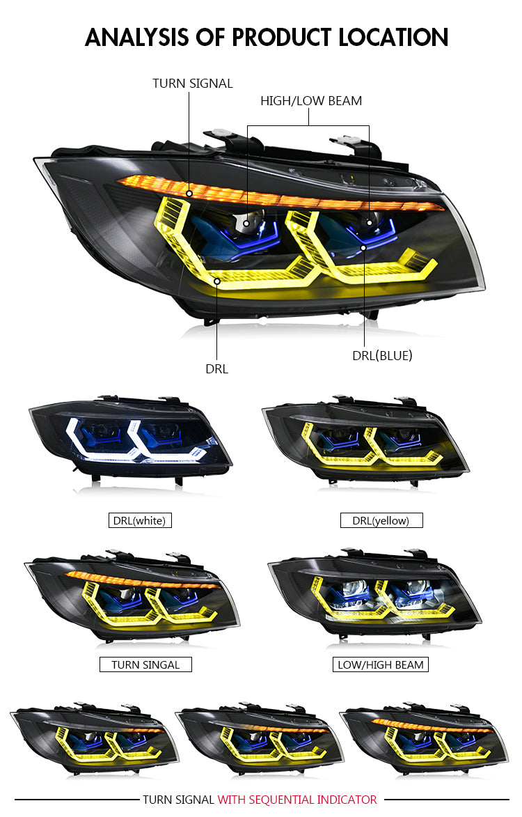 These headlight assemblies are compatible with BMW 3-Series E90/E91 models, including 320i, 323i, 325, 328i, 330 and 335 (2005-2012). They are available for both the low-profile original halogen version and the original xenon version for the wagon models.