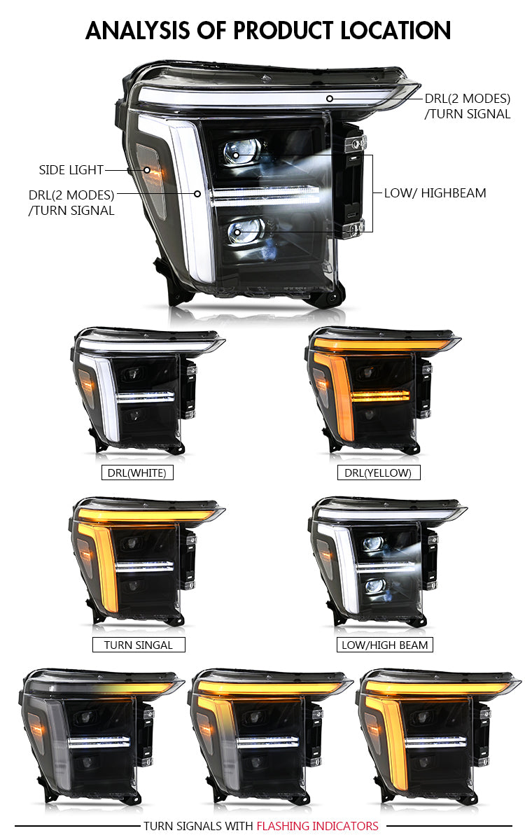 Enhance the appearance and nighttime visibility of your 13th-generation Ford F-150 (2021–2023) with this high-performance Full LED Headlight Pair. Designed for a clean OEM-style fitment, these headlights feature plug-and-play installation, allowing you to upgrade your truck without cutting wires or making complicated modifications.