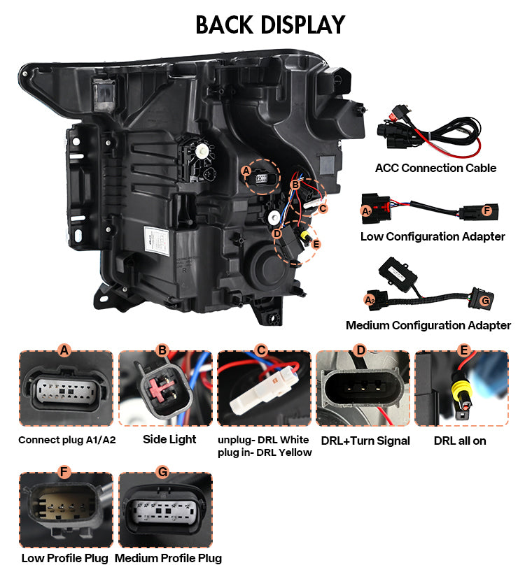Constructed with high-quality PC, ABS, and PMMA materials, each headlight assembly is fully sealed for maximum protection against water, dust, and corrosion. Built for harsh weather and daily driving conditions, these headlights deliver long-lasting durability and consistent lighting performance.