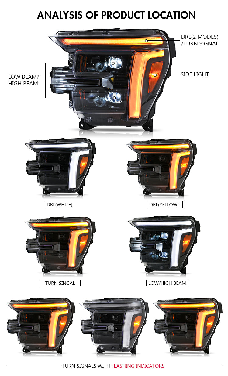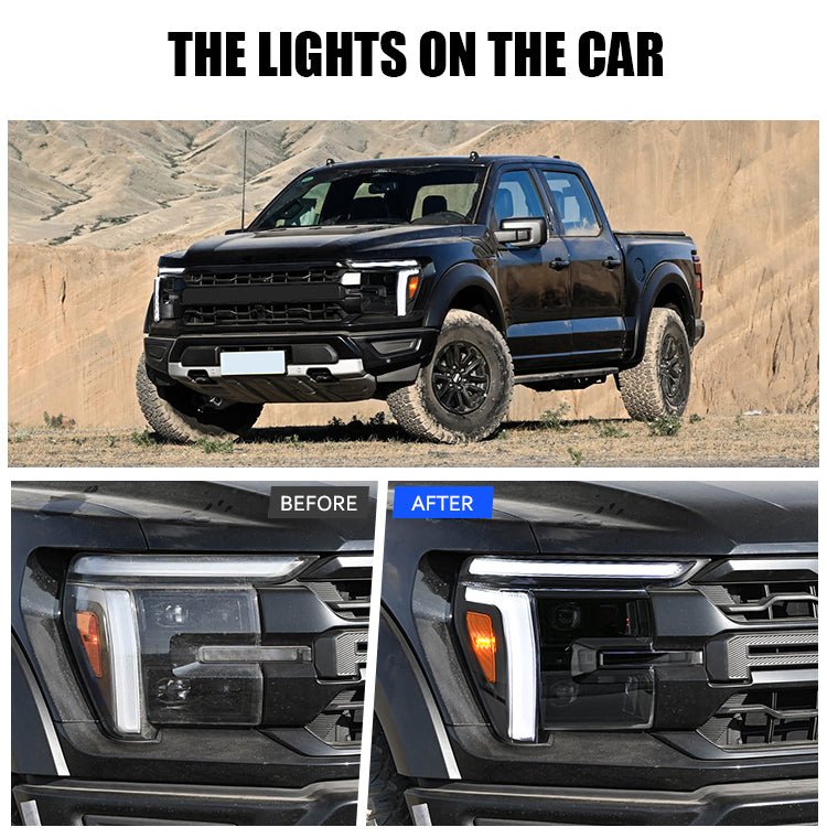 Enhance the appearance and nighttime visibility of your 14th-generation Ford F-150 (2024–2026) with this high-performance Full LED Headlight Pair. Designed exclusively for Lariat, King Ranch, Platinum, and Raptor trims, these headlights offer a clean OEM-style fitment with true plug-and-play installation—no wire cutting or complicated modifications required.